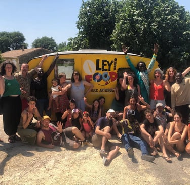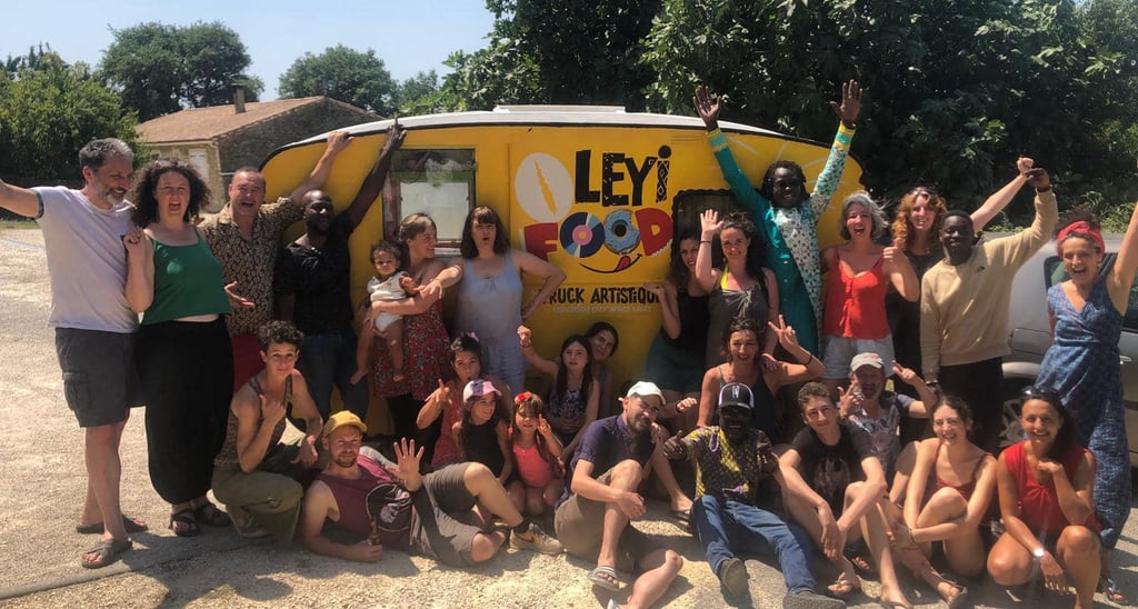 Une magnifique caravane jaune devenue un food truck artistique pour accompagner des soirées festives dans la Drôme.